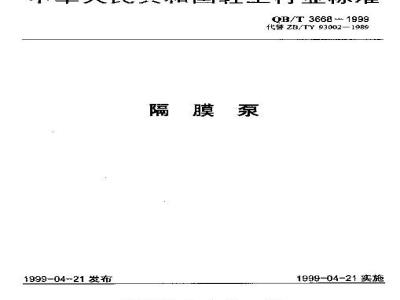 木标准是原专业标准ZBTY93002—1989案膜系,经由国轻行【[999】112号文发布转化标准号为QB/T3668一1999,内容不变。本标准由国家轻工业局行业管理可提出,本标准由金国商梁机械标难化技术委会归口。本标中潮南省醛酸陆瓷械厂,黄德德瓷机械厂负贡起节。本标催主要赵草人,欧相、阳名伟、形嫂、刘季科。4标准白实施之口起,向时代替原轻工业部发布的轻工专业标雅ZB/TY930021989隔膜泵。