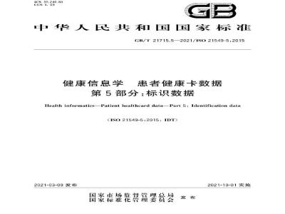 GB∕T 21715.5-2021 健康信息学 患者健康卡数据 第5部分:标识数据