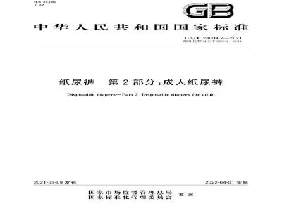 Disposable diapers-Part 2:Disposable diapers for adult2021-03-09发布