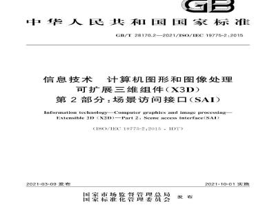 GB/T28170≤信息技术计算机图形和图像处理可扩展维组件(X3D)》分为2个部分:第1部分:体系结构和基础组件;第2部分:场景访问接口(SAI):本部分为GB/T28170的第2部分。本部分接照(13/111一2009给出的见则起草本部分使用翻译法等同采用IS0/IEC19775-2:2015信息技术计算机图形和图像处理可扩展维组件(X3D)第2部分:场景访问接口(SAI)》。与本部分中规范性引用的国际文件有一致性对应关系的我国文件如下:GB/T13000—2010信息技术通用多八位编码字符集(UCS)(ISO/IEC10646:2003T)。