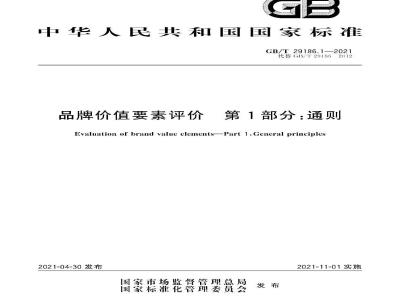 GB/T29186《品牌价值要素评价》分为6部分:第1部分:通则: