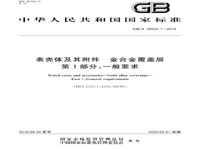 GB/T38020《表壳体及其附件金合金覆盖层》分为两个部分:一第1部分:一般要求;