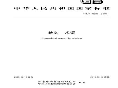 本标准界定了地名领域常用的术语及定义。GB/T38210—2019