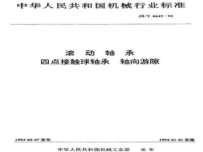 JB/T 6643-1993 滚动轴承四点接触球轴承 轴向游隙 JB/T6643-1993 标准下载解压密码:www.bzxz.net