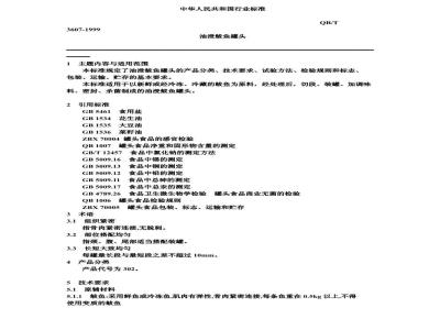 本标准规定了油浸鱿鱼罐头的产品分类、技术要求、试验方法、检验规则和标志、包装、运输、贮存的基本要求。本标准适用于以新鲜或经冷冻、冷藏的鱿鱼为原料、经处理后,切段、装罐、加调味料、密封、杀菌制成的油浸鱿鱼罐头。 QB/T 3607-1999 油浸鲅鱼罐头 QB/T3607-1999 标准下载解压密码:www.bzxz.net