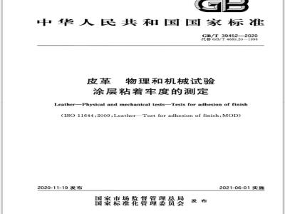 GB∕T 39452-2020 皮革 物理和机械试验 涂层粘着牢度的测定