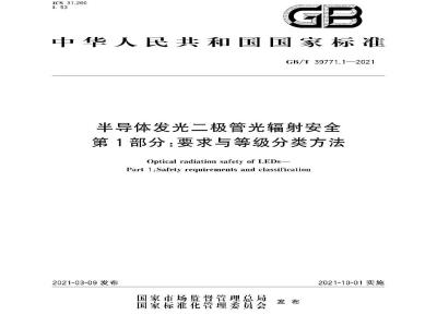G:B/T39771的本部分规定了半导体发光二极管((以下简称1.EI))的光辐射安全要求与危险等级分类方法。