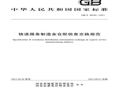 快递服务制造业仓配信息交换规范GB/T 40044—2021