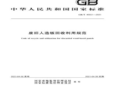 Code of recycle and utilization for discarded wood-based panels2021-04-30发布