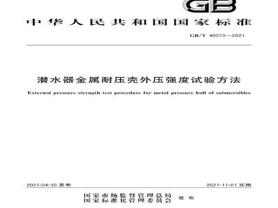 中文名称:潜水器金属耐压壳外压强度试验方法