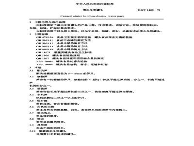 本标准规定了清水冬笋罐头的产品分类、技术要求、试验方法、检验规则和标志、包装、运输、贮存的基本要求。本标准适用于以冬笋为原料,经加工处理、装雄、密封、杀菌制成的清水冬笋罐头。 QB 1408-1991 清水冬笋罐头 QB1408-1991 标准下载解压密码:www.bzxz.net