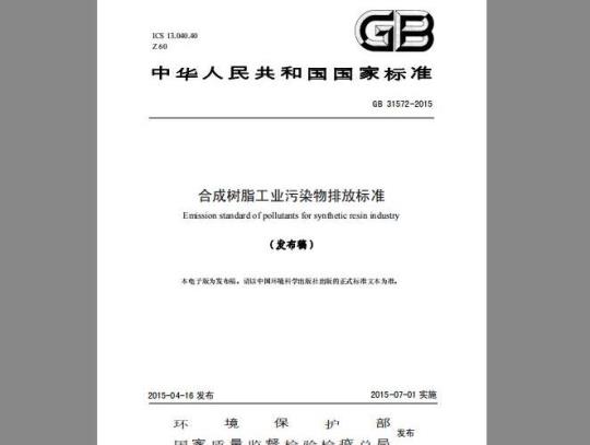 新建企业自2015年7月1日起,现有企业自2017年7月1日起,其水污染物和大气污染物排放控制按本标准的规定执行,不再执行《污水综合排放标准》(GB8978-1996)和《大气污染物综合排放标准》(GB16297-1996)中的相关规定。各地也可根据当地环境保护的需要和经济与技术条件,由省级人民政府批准提前实施本标准。本标准是合成树脂工业水污染物和大气污染物排放控制的基本要求。地方省级人民政府对本标准未作规定的项目,可以制定地方污染物排放标准;对本标准已作规定的项目,可以制定严于本标准的地方污染物排放标准。环境影响评价文件或排污许可证要求严于本标准或地方标准时,按照批复的环境影响评价文件或排污许可证执行。本标准由环境保护部科技标准司组织制订。本标准起草单位:中国石油和化工勘察设计协会环境保护设计专业委员会、中国天辰工程有限公司、中蓝连海设计研究院。本标准环境保护部2015年4月3日批准。本标准自2015年7月1日起实施。本标准由环境保护部解释。