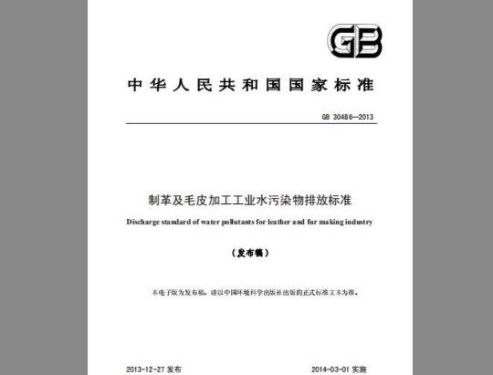 标准名称:GB 30486-2013 制革及毛皮加工工业水污染物排放标准