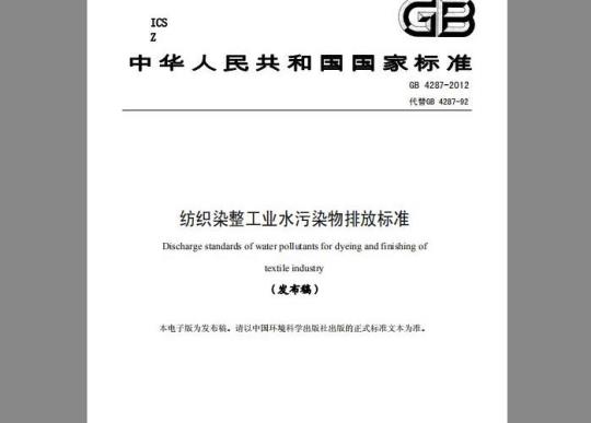 标准名称:GB 4287-2012 纺织染整工业水污染物排放标准