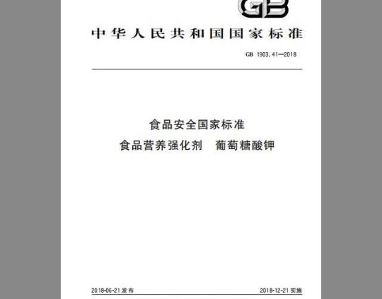 标准名称:食品安全国家标准 食品营养强化剂 葡萄糖酸钾