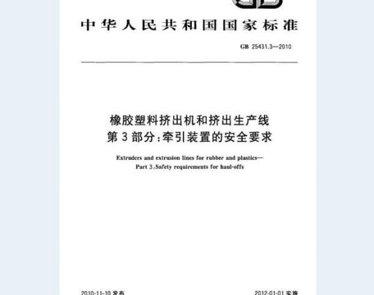 标准名称:橡胶塑料挤出机和挤出生产线 第3部分 牵引装置的安全要求标准