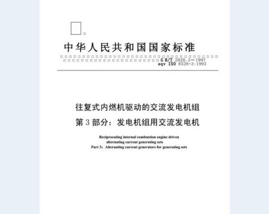 标准名称:往复式内燃机驱动的交流发电机组 第3部分:发电机组用交流发电机