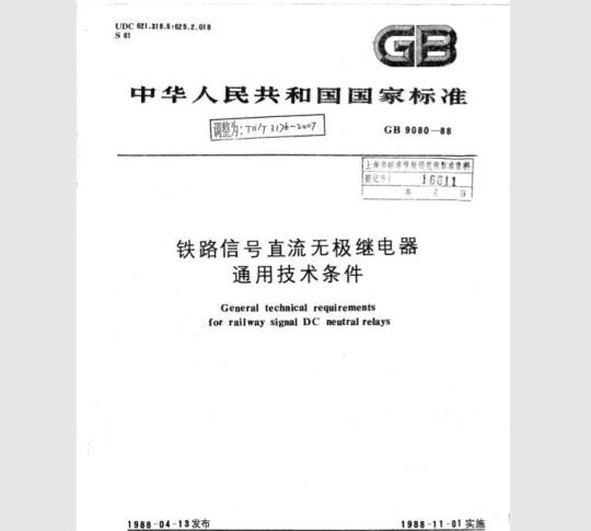 General technical requirementsfor railway signal DC neutral relays1988-04-13发布