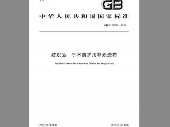 标准名称:GB/T 38014-2019 纺织品 手术防护用非织造布
