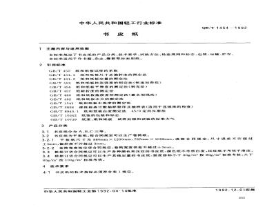 4.1书皮纸的技术指标必须符合表1规定。中华人民共和国轻工业部1992-04-14批准1992-12-01实施