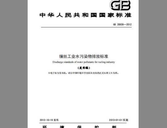 标准名称:GB 28936-2012 缫丝工业水污染物排放标准