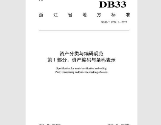 《资产分类与编码规范》分为以下部分:一第1部分:资产编码与条码表示:一一第2部分:资产分类与代码;一一第3部分:资产分类体系维护管理要求;一第4部分:资产卡片信息要求;本部分为DB33/T2227的第1部分