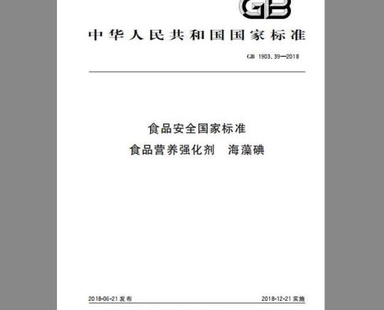 标准名称:食品安全国家标准 食品营养强化剂 海藻碘