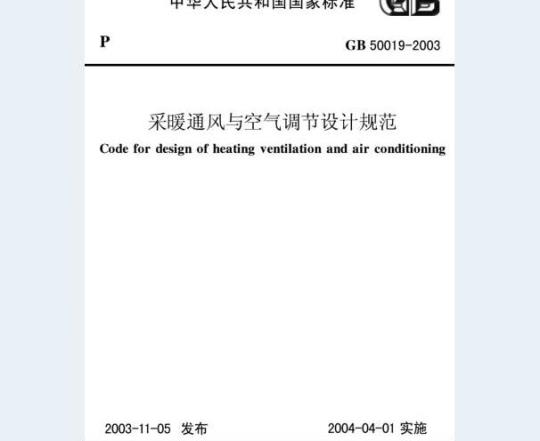 《采暖通风与空气调节设计规范》的公告现批准采暖通风与空气调节设计规范》为国家标准,编号为GB50019一2003,自2004年4月1日起实施。其中,第3.1.9、4.1.8、4.3.4、4.3.11、4.4.11、4.5.2、4.5.4、4.5.9、4.7.4、4.8.17、4.9.15.1.10、5.1.12、5.3.3、5.3.4(1)(2)5.3.5、5.3.6、5.3.12、5.3.14-5.4.65.6.10.5.7.5.5.7. 8.5. 8. 5.5. 8. 15、6. 2. 1、6. 2. 15~6. 6. 3、6. 6. 8、7.1.5~7.1.7、7.3.4、7.8.3、8.2.9、8.4.8条(款)为强制性条文,必须严格执行。原《采暖通风与空气调节设计规范》GBI19·-87及2001年标准局部修订第26号公告同时废让。本规范由建设部标雅定额研究所组织中国计划出版社出版发,行。