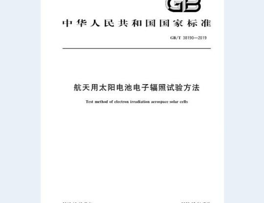 航天用太阳电池电子辐照试验方法Test method of electron irradiation aerospace solar cells2019-10-18发布