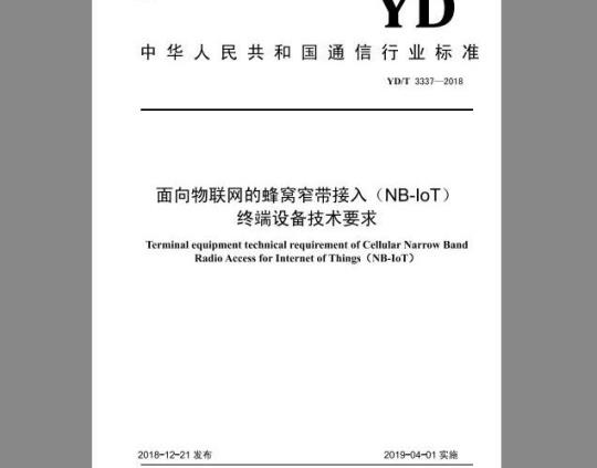 标准名称:面向物联网的蜂窝窄带接入(NB-IoT) 终端设备技术要求