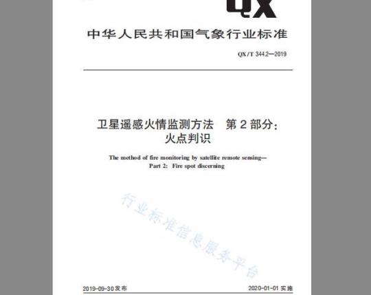 标准介绍:Qx/T344《卫星遥感火情监测方法》分为6个部分