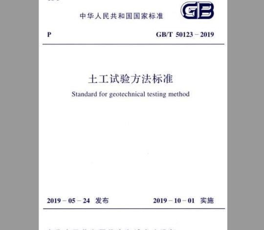 现批准《土工试验方法标准》为国家标准,编号为GB/T501232019,自2019年10月1口起实施。原《土工试验方法标准》(GB/T50123—1999)同时废止。