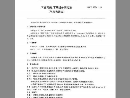 标准介绍:本标准等效采用国际标准lSO7941:1988《商品丙烷和丁烷的分析(气相色谱法