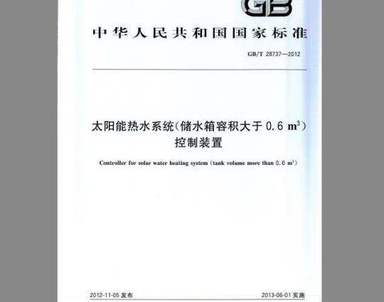 标准介绍:本标准规定了太阳能热水系统(储水箱容积大于0.6m3)控制装置(以下简称控制装置)的术语和