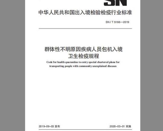 Code for health quarantine to entry special chartered plane fortransporting people with community unexplained diseases行业标准信息服务平