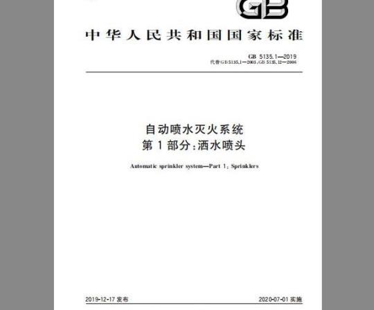 GB5135的本部分规定了自动喷水灭火系统洒水喷头的分类、公称流量系数、接口螺纹、颜色标志、型号、要求、试验方法、检验规则、使用说明书和包装、运输、贮存等。
