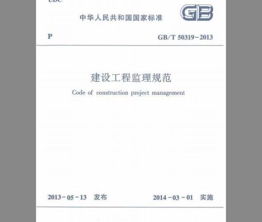 现批准《建设工程监理规范》为国家标准,编号为GB/T50319-2013,自2014年3月1日起实施。原国家标准《建设工程监理规范》GB50319-2000同时废止。本规范由我部标准定额研究所组织中国建筑工业出版社出版发行。