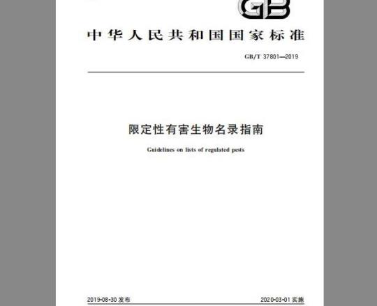 依据国际植物检疫措施标准(ISPM)第19号标准,制定、维护以及公布限定性有害生物名录,明确需要采取的临时检疫措施或者紧急检疫措施,以便有助于防控有害生物传入和(或)扩散,通过增加透明GB/T37801—2019