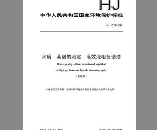 为贯彻《中华人民共和国环境保护法》和《中华人民共和国水污染防治法》,保护生态环境,保障人体健康,规范水中萘酚的测定方法,制定本标准。本标准规定了测定地表水、地下水、生活污水、工业废水和海水中1-萘酚(α-萘酚)和2-萘酚(β-萘酚)的高效液相色谱法。本标准的附录A和附录B为资料性附录本标准为首次发布。