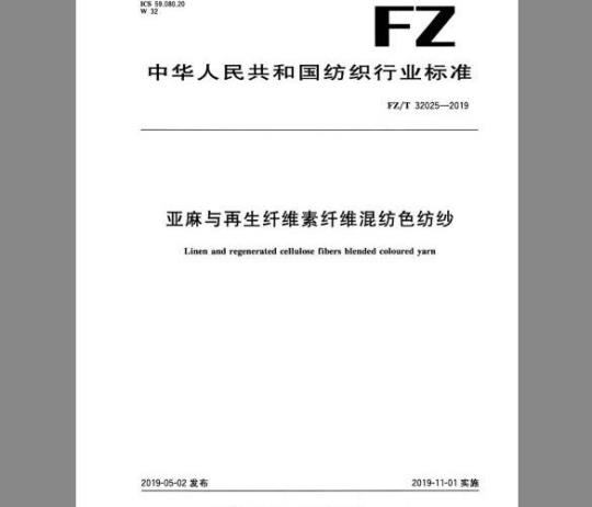 亚麻与再生纤维素纤维混纺色纺纱FZ/T32025—2019