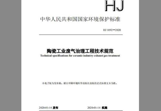 为贯彻《中华人民共和国环境保护法》《中华人民共和国大气污染防治法》等法律法规,防治环境污染,改善生态环境质量,规范陶瓷工业废气治理工程的建设与运行管理,制定本本标准规定了陶瓷工业废气治理工程设计、施工、验收和运行管理的技术要求。本标准为指导性标准