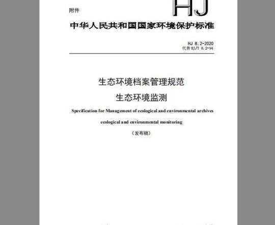 为了贯彻《中华人民共和国档案法》《中华人民共和国环境保护法》《环境保护档案管理办法》,加强生态环境监测档案的科学管理,规范生态环境监测档案工作,发挥生态环境监测档案在各项生态环境管理中的作用,更好地为生态环境保护事业服务,制定本标准,本标准规定了生态环境监测工作中产生的具有保存价值的生态环境监测文件材料的形成、积累、整理、归档和生态环境监测档案的保管与鉴定、开发和利用的一般方法,是生态环境监测机构(部门)档案管理工作的依据。本标准是对《环境保护档案管理规范环境监测》(HJ/T8.2-94)的修订。本次为第一次修订。修订的主要内容如下:一一增加了术语、定义、规范性引用文件、案卷编目式样;一一补充完善了生态环境监测文件材料归档范围与整理方法、档案鉴定销毁程序:一删除了环境监测档案的收费条款及与环境监测档案管理工作非直接相关的附录内容。本标准的附录A、附录B、附录C为规范性附录,本标准由生态环境部办公厅、法规与标准司组织制订。本标准起草单位:中国环境监测总站、江苏省环境监测中心。本标准生态环境部2020年01月10日批准。本标准自2020年04月01日起实施,本标准由生态环境部解释。