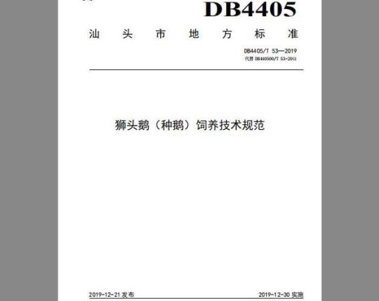 标准介绍:本标准规定了狮头鹅(种鹅)饲养的术语和定义、饲养要求和病死鹅无害化处理等内容。