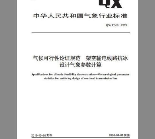 Specificationsfor climaticfeasibility demonstrationMeteorological parameterstatisticsforanti-icingdesign of overheadtransmissionline2019-12-26发布