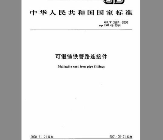 本标准是根据国际标准ISO49:1994《按ISO7-1加工螺纹的可锻铸铁管路连接件》对GB/T3287-1982《可锻铸铁管路连接件技术条件》、GB/T3288-1982《可锻铸铁管路连接件验收规则》、GB/T3289.1~3289.39-1982《可锻铸铁管路连接件型式尺寸》进行的修订