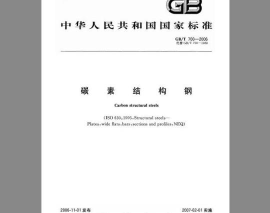 本标准与ISO630:1995《结构钢》的一致性程度为非等效,主要差别如下:-不设届服强度185N/mtm2级和355N/mm2级的牌号;设195N/mm2级,215N/mm2级的牌号Q195.Q215Q235和Q275的A级钢磷含量降低0.005%:Q235B级钢按脱氧方法将厚度分两档,且碳含量均为0.20%GB/T700—2006