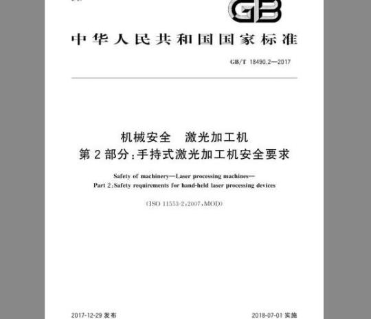 GB/T18490的本部分规定了手持式激光如工机的危害,安全要求和措施给用户的信息、标志等要求。