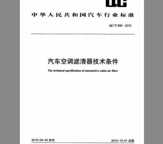 Thetechnical specification ofautomotive cabin air filter2015-04-30发布
