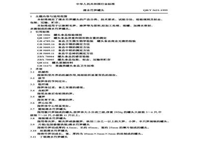 本标准规定了清水竹笋罐头的产品分类、技术要求、试验方法、检验规则及标志、包装、运输、贮存。本标准适用于以新鲜毛笋、麻笋等为原料,经加工处理、装罐、加清水密封、杀菌制成的清水竹笋罐头。 QB/T 3621-1999 清水竹笋罐头 QB/T3621-1999 标准下载解压密码:www.bzxz.net