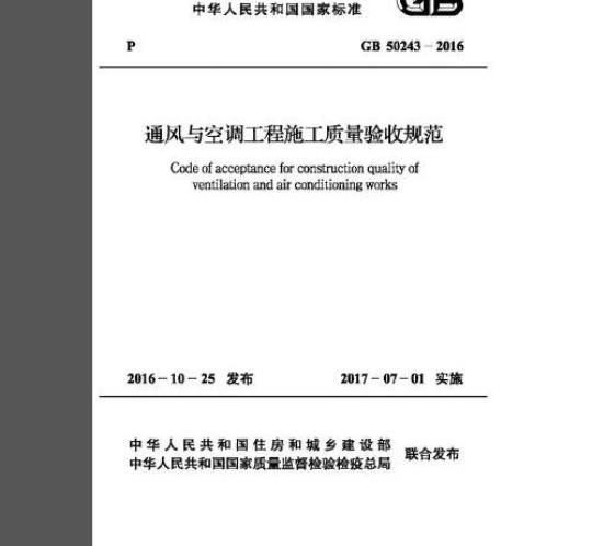 Code of acceptance for construction quality ofventilation and air conditioning worksGB50243-2016